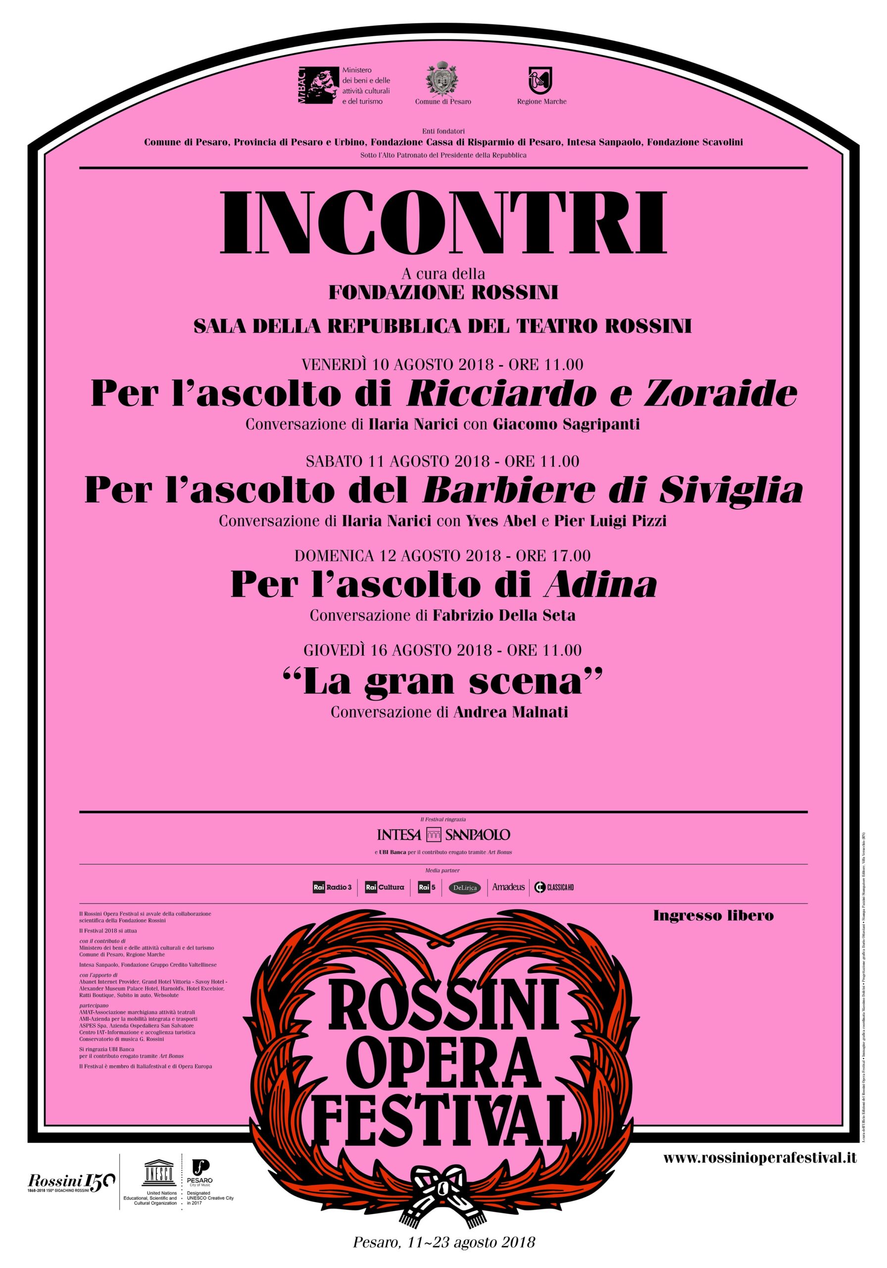 Le date dei consueti incontri preparatori all’ascolto delle opere del Rossini Opera Festival 2018 a cura della Fondazione G. Rossini, che si terranno presso la Sala della Repubblica del Teatro Rossini di Pesaro.